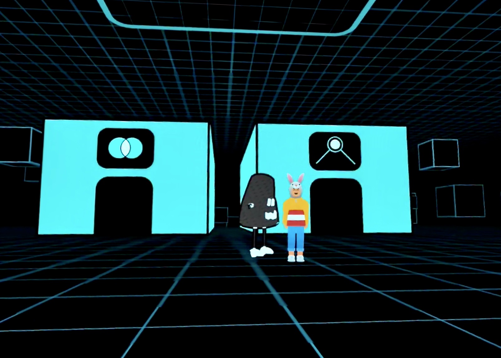 센터의 설계자 유진과, 끝내 반대하는 지호. 두 사람의 균열 속에서, 관객은 직접 선택하고 탐험하며 지호가 남긴 관리자코드의 흔적을 따라가야 한다.